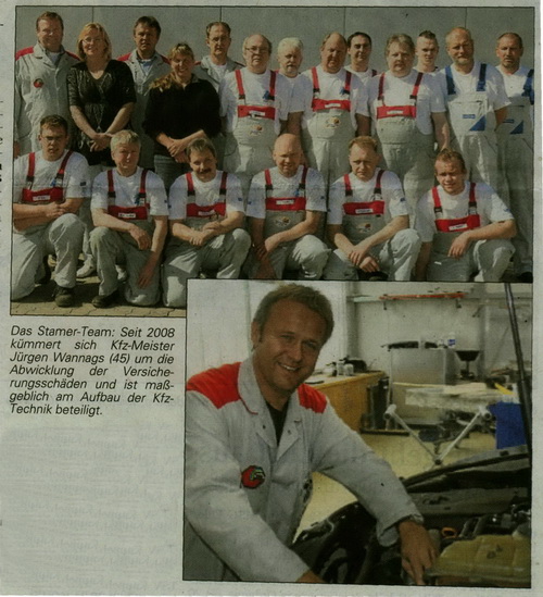 Um alle Leistungen rund umsAuto aus einer Hand anzubieten, hat der Firmenchef die bewährte Leistungspalette um den Bereich Kfz-Technik erweitert. Als freie Werkstatt bietet Colortechnik Stamer unter anderem Inspektionen, TÜV-Abnahmen, .Bremsenprüfung und Reparatur, Achsvermessung, Reifen- und Klimaservice für alle Fabrikate an. (Quelle: DLZ v. 22.09.2010)