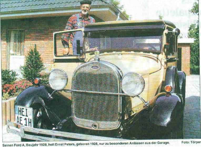 Peters' Sammlung von Oldtimern auf vier Rädern nimmt sich im Vergleich bescheiden aus. Ungefähr 1500 Arbeitsstunden im Lauf von fünf Jahren investierte der Wöhrdener in seinen siebzig Jahre alten Ford A. Als er das Auto auftrieb, war es ein Wrack, das den Maschinenbaumeister vor große Problerne stellte. Immer wieder gab es Momente, in denen Peters grübelnd vor dem Torso aus Blech saß, Momente, in denen er einfach nicht weiterkam. Das Ergebnis der Arbeit ist umso beeindruckender.