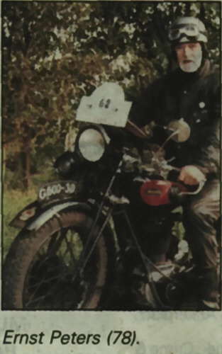 Nicht ganz so tollkühn, aber doch sehr bewundernswert ist Ernst Peters aus Wöhrden. Mit seinen inzwischen immerhin 78 Jahren lässt er sich von Wind und Wetter nicht schrecken. Er knattert mit seinem Oldtimer-Motorrad durch die Welt und lässt sich dabei noch auf einen Wettkampf ein. Mit Erfolg. Zum dritten Mal in Folge hat er gerade mit der bundesdeutschen A-Mannschaft des Veteranen-Fahrzeug-Verbandes die internationale Windmill-Trophy in Schweden gewonnen. Hut ab und herzlichen Glückwunsch!!! (Quelle: DLZ v. 18.08.2006)