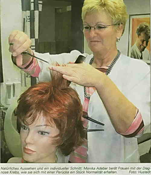 Es ist zwar „nur" ein kosmetischer Aspekt, doch machen die Haare auch einen Teil der Persönlichkeit aus und deren Verlust ist für die Betroffenen oft ein Schock. An diesem Punkt, besonders in einer solchen Lebenskrise, möchte Friseurin Monika Adebar ein Stück Normalität erhalten. Sie bietet in ihrem Salon in Heide individuelle Perücken an und berät Kundinnen auch in punkto Make up.