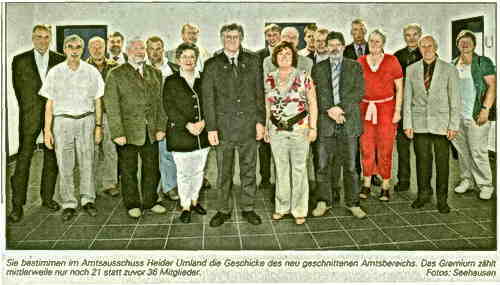 In die ständigen Ausschüsse wurden gewählt: - Haupt und Personalausschuss: Edgar Lehmann. Anke Marohn, Jürgen Hinz, Hans Georg Klarmann, Thies Wellnitz, Kay Evers, Konrad Kaeding; - Finanzausschuss: Hans Peter Borchardt, Eckard Sude, Martin Nienhüser, Hans Georg Klarmann, Sigrid Brandt, Alwin Petersen, Wolfgang Roggow.