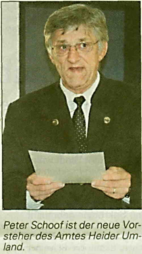 Im Vorfeld der konstituierenden Sitzung des Amtsausschusses erzielten sowohl die unabhängigen Wählervereinigungen, als auch Christdemokraten und Sozialdemokraten in den elf amtsangehörigen Gemeinden Einigkeit darüber, die Kandidatur des Wöhrdener Bürgermeisters zu unterstützen. Eine solche Eintracht unter gelegentlich streitfreudigen Kommunalpolitikern ist selten. Für den studierten Diplom Pädagogen Schoof ist der Vorsitz im Amtsausschuss die „Krönung meiner politischen Tätigkeit". Das eindeutige Votum ermutige und bestärke ihn. Der gebürtige Wöhrdener sieht eine seiner Hauptaufgaben darin, die früher getrennt arbeitenden Verwaltungen Heide Land und Weddingstedt zusammenzuführen. Beide waren bis vor ihrer Fusion im Januar unterschiedlich strukturiert.