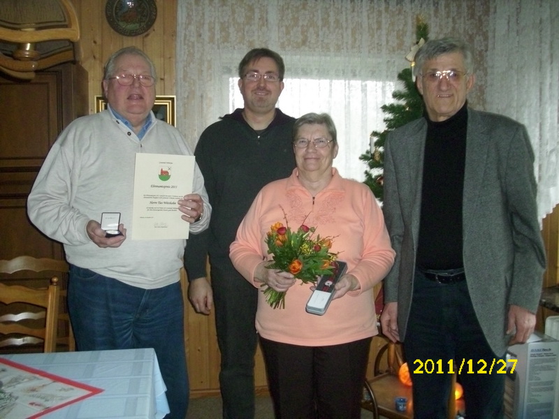 2001 wurde Ties Witthohn Ehrenvorsitzender der Siedlergemeinschaft Wöhrden und jetzt, 10 Jahre später, wurde ihm der Ehrenamtspreis der Gemeinde überreicht. Als Zeichen für die langjährliche familiäre Unterstützung durch seine Frau, erhielt sie einen Blumenstrauß und eine Uhr.