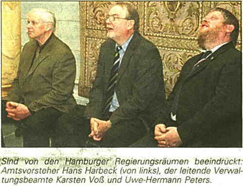 Wöhrden - Der gestrige Tag wird in der Chronik der Gemeinde Wöhrden garantiert festgehalten: Auf Einladung des Hamburger Senators für Stadtentwicklung, Axel Gedaschko, war eine Delegation zu Gast im altehrwürdigen Hamburger Rathaus.