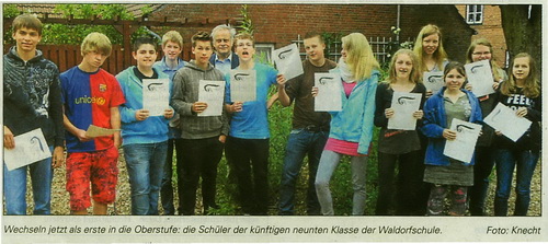 „Der Einstieg in die Oberstufe war noch einmal eine besondere Herausforderung für die junge Schule", sagt Teichert, der seit 16 Jahren an der Itzehoer Waldorfschule unterrichtet. Einerseits gelte es, den Jugendlichen geeignete Angebote für fachlich fundiertes und soziales Lernen zu unterbreiten und sie so auf die Prüfungen vorzubereiten (Haupt- und Realschulabschluss, Fachabitur und allgemeine Hochschulreife). Andererseits wolle die Waldorfpädagogik den Jugendlichen einen Entwicklungsraum öffnen, in dem sie ihre Anlagen, Ziele und Begabungen verfolgen können. Zur vierjährigen Oberstufe gehören ein Landwirtschafts-, Betriebs und Sozialpraktikum, Zwölftklass-Spiel und Eurythmie-Abschluss, bevor es sich in der 13. Klasse nur noch um die Abiturvorbereitungen dreht. Dabei orientiert sich die Oberstufe an Eckpfeilern der Waldorfpädagogik: dem Epochen Unterricht, den Praktika sowie dem künstlerisch-handwerklichen Unterricht. Dieses Unterrichtskonzept wird am Ende der 12. Klasse mit dem Wal dorfschul Abschluss dokumentiert.
