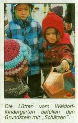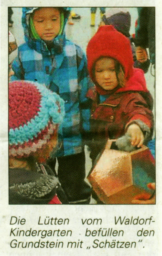 Zurzeit sind die 20 Kleinsten der Waldorf Schule noch in einem Container neben dem Sportplatz untergebracht. Im Sommer ziehen sie dann in das rund 310 Quadratmeter große neue Gebäude. Finanziert wird der 623 000 Euro teure Bau durch Spenden, Fördermittel, Geld der Waldorfschule, Kredite und die Gemeinde. Später soll auf dem Gelände auch noch der Neubau für eine größere Schule entstehen.