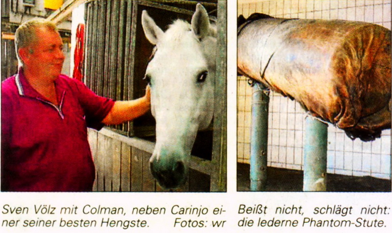 Gewinnen ist nicht zuletzt eine Kopfsache. Auch bei Pferden, erklärt Völz. Um die Sprunghöhen zwischen 1,50 und 1,60 Meter zu schaffen, „müssen die Pferde hart kämpfen können und für ihren Reiter mitkämpfen wollen“. Die heutigen Parcours auf Weltspitzen Niveau sind „unheimlich schwierig", sagt Völz. Zwei bis drei Wasserstellen und sehr vielfältige Sprünge. „Dafür müssen die Pferde heut zutage ziemlich schlau sein.“ Dass Carinjo ein besonders schlaues Pferd ist, hat Sven Völz schon früh bei der täglichen Arbeit gemerkt. „Der macht alles über den Kopf und will alles richtig machen." Auch Thomas Voß habe immer an den ehrgeizigen Hengst geglaubt und Völz bestärkt, weiter intensiv zu trainieren: „Da steckt was drin."