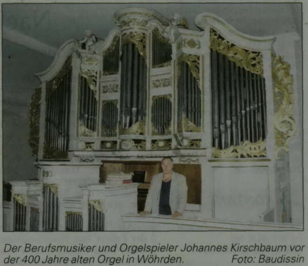 Die Orgel wurde von Orgelbauer Anthonius Wilde 1593, drei Jahre vor Scheidemanns Geburt, fertig gestellt und ist bis heute im Aussehen unverändert geblieben - aber nicht in der Technik, denn von den 33 klingenden Registern stammen nur noch 13 aus dem Herstellungsjahr. Die Wöhrdener Orgel, in Augen und Ohren der Musikkenner ein Juwel, gehört zu den ältesten noch spielbaren Instrumenten der Welt. Kirschbaum: „Sie ist die beste für Barockmusik geeignete Orgel." Die Wöhrdener Kirche ist für ihn ein ebenso guter Konzertraum wie der Meldorfer Dom.