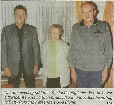 Bei den anstehenden Neuwahlen wurden Vorsitzender Karl-Heinz Blohm, Kassenwart Uwe Blohm, Beisitzerin (Frauenbeauftragte) Betty Reis und Kassenprüfer Hermann Clausen einstimmig gewählt. Als Delegierter vertritt die Wöhrdener Siedler auf der Kreisverbandsversammlung Karl-Heinz Blohm.