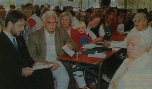 Im Jahre 1281 wurde Wöhrden in einem Friedensvertrag mit der Hansestadt Hamburg, der friedlichen Handel zwischen beiden Orten garantieren sollte, erstmals urkundlich erwähnt. Dies nahm die Gemeinde zum Anlass, mit einem fünftägigen bunten Zeltfest unter Mitwirkung aller Vereine, 725-jähriges Jubiläum zu feiern. Dazu gehörte auch ein Zeltgottesdienst mit Pastor Dieter Gördel (li.). Zum Jubiläum gekommen waren auch Wöhrdens ehemaliger, langjähriger und recht beliebter Pastor Karl-Heinrich Wierig (2.v.h.) mit Gattin. Sie war jahrelang eine beliebte Lehrerin und zeitweise Rektorin an der Grundschule in Wöhrden. (pdb/Foto: wi) (Quelle: BE v. 06.09.2006)