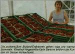 Während sich große und kleine Leckermäulchen über die sonnenverwöhnten, zuckersüßen Früchte freuen, sind die Erdbeer-Bauern nicht so glücklich. „Die Erdbeeren reifen jetzt sehr schnell", sagt Westhof-Chef Rainer Carstens - was den Landwirten eine kurze und höchstens durchwachsene Saison beschert. (Quelle: DLZ v. 04.07.2006)