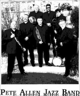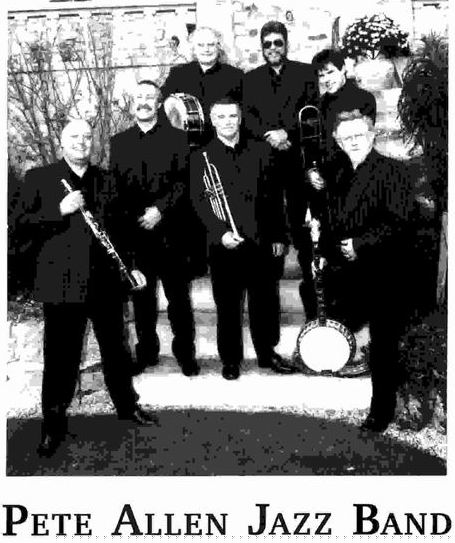 The Pete Allen Jazz. Band was formed on the 1st October 1978. They were soon playing countless one night shows combined with regular Radio and Television appearances and released their first album on the Black Lion label. Then as the Band's fame and reputation grew, they began to tour Europe and later the USA. Although there have been personnel changes within the Band over the years, Pete has always maintained a very high standard of musical content and showmanship. His present seven piece band bring together a team of the most talented and respected jazz musicians in the country. The line up is, Trumpet, Trombone, Banjo, Double Bass, Drums and Piano with Pete playing Clarinet and Saxophones. The vocalists come from within the Band. This combination performs an exciting, entertaining and thoroughly professional show of Traditional, Dixieland and New Orleans Jazz. It is a happy foot tapping style that can be enjoyed by everyone. The Band is equally at home playing a Concert or providing Hot Jazz for Dancing. The Band's repertoire is taken from the early jazz sounds of such immortal stars as Louis Armstrong, Jelly Roll Morton and Sidney Bechet together with a mix of Traditional Jazz Standards. Pete also performs a number of his own compositions. His vocal tributes to the great Louis Armstrong are truly amazing being so close to the original it's uncanny! In addition to the Band instrumentals and songs, Pete's musicians are featured as soloists. The Pete Allen Jazz Band is easily one of this country's finest fully professional bands who will make any party, club or festival go with a swing! There's no doubt that the years ahead are certainly going to be a very busy time for Pete and his Band taking who are British Traditional / Dixieland Jazz into the 21st Century! So, why not join them and................................ " Keep Jazzin' with Pete Allen"