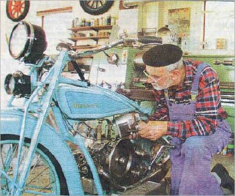 Er ist ein Tüftler mit Hang zum Perfektionismus. Er verfügt über das notwendige technische Know-how und über „Stehvermögen", wie er selbst sagt. Ein anderes Wort für das, was er damit meint, ist Geduld -warten können, bis der passende Scheinwerfer; der richtige Sattel, der richtige Vergaser gefunden ist irgendwo auf einem „Teilemarkt". Warten können, bis eines guten Tages ein Tüftler-Kollege kommt und den richtigen Tipp gibt oder selbst das gesuchte Teil beisteuern kann. guten Tages ein Tüftler-Kollege kommt und den richtigen Tipp gibt oder selbst das gesuchte Teil beisteuern kann. Ernst Peters ist vernarrt in alte Autos und, noch viel mehr, in alte Motorräder. Vor ungefähr 30 Jahren begann der heute 70jährige Wöhrdener, Fahrzeuge von anno dazumal zu restaurieren. Zuerst möbelte er ein heruntergekommenes Auto, einen Hanomag Kurier, auf. Sehr bald verlegte sich Peters darauf, in seiner Privatwerkstatt - einer Halle, die früher einmal als Mähdrescher-Garage diente - Jahrzehnte alte Motorräder in ihren Originalzustand zu versetzen. Nicht viele, aber dafür jedes einzelne mit Hingabe und großer Sorgfalt bis ins Detail.